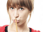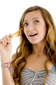 Zdjęcie "młoda kobieta z ołówkiem w jej ustach" może być wykorzystywane do celów osobistych i komercyjnych zgodnie z warunkami zakupionej licencji Royalty-free. Obraz jest dostępny do pobrania w jakości wysokiej rozdzielczości do 5760x3840.