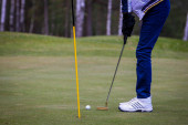Golfistów hit zamiatanie pole golfowe w lecie. Gra w golfa