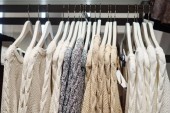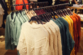 Zdjęcie "Ubrania wiszą na półce w sklepie z ubraniami." może być wykorzystywane do celów osobistych i komercyjnych zgodnie z warunkami zakupionej licencji Royalty-free. Obraz jest dostępny do pobrania w jakości wysokiej rozdzielczości do 5760x3840.