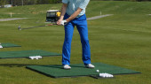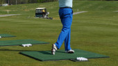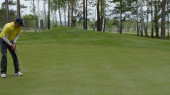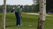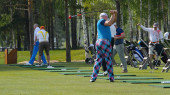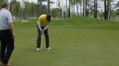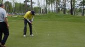 Golfistów hit zamiatanie pole golfowe w lecie. Gra w golfa