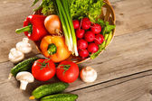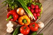Sałatka ze świeżych warzyw w talerz na stole, Selektywny fokus