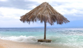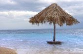 Stary parasol na plaży. Pochmurna pogoda na Filipinach