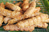 Wieprzowe smażone z czosnkiem w ulicy żywności