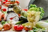 skład surowca świeże warzywa jesienne na brązowym tle drewnianych