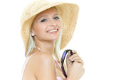portret młodej kobiety blondynka uśmiechający się w wh