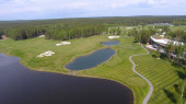 Widok z lotu ptaka golfistów grając na putting green. Profesjonalnych graczy na zielone pole golfowe
