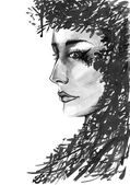 portret pięknej dziewczyny. sylwetka kobiety. szkic