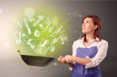 Zdjęcie "Młoda kobieta z ikonami akcesoriów kuchennych" może być wykorzystywane do celów osobistych i komercyjnych zgodnie z warunkami zakupionej licencji Royalty-free. Obraz jest dostępny do pobrania w jakości wysokiej rozdzielczości do 5760x3840.