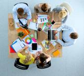 Ludzie biznesu, siedzi i dyskusji o spotkanie biznesowe. Ludzie biznesu