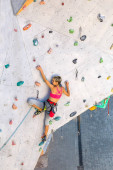 Zdjęcie "Ściana wspinaczkowa kobieta z uchwytami" może być wykorzystywane do celów osobistych i komercyjnych zgodnie z warunkami zakupionej licencji Royalty-free. Obraz jest dostępny do pobrania w jakości wysokiej rozdzielczości do 5760x3840.