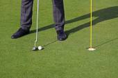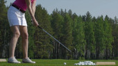 Golfistów hit zamiatanie pole golfowe w lecie. Gra w golfa