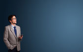 Young man smoking cigarette with copy space