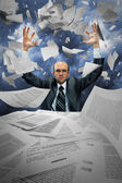 młody biznesmen, siedząc na krześle i rzuca papier