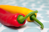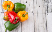 czerwony, zielony i żółty papryki na deskę do krojenia