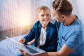 Zdjęcie "Mały chłopiec, omawiając kreskówka z ojcem" może być wykorzystywane do celów osobistych i komercyjnych zgodnie z warunkami zakupionej licencji Royalty-free. Obraz jest dostępny do pobrania w jakości wysokiej rozdzielczości do 5760x3840.