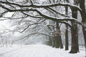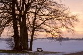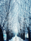 kryształki lodu na starych treesb wzdłuż polnej drodze