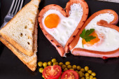 Kiełbaski smażone jajka w kształcie serca