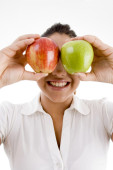 młody atrakcyjny model trzyma jabłko