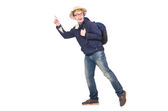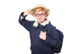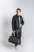 człowiek w kapelusz i okulary przeciwsłoneczne, torba skórzana na ramię