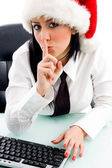 Zdjęcie "młoda kobieta w pracy w Boże Narodzenie kapelusz" może być wykorzystywane do celów osobistych i komercyjnych zgodnie z warunkami zakupionej licencji Royalty-free. Obraz jest dostępny do pobrania w jakości wysokiej rozdzielczości do 5760x3840.