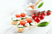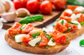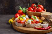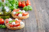 Zdjęcie "Bruschetta z mozzarellą i pomidorkami." może być wykorzystywane do celów osobistych i komercyjnych zgodnie z warunkami zakupionej licencji Royalty-free. Obraz jest dostępny do pobrania w jakości wysokiej rozdzielczości do 5760x3840.