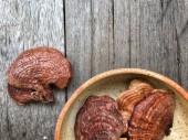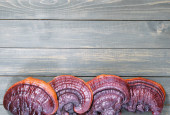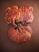 Ganoderma Lucidum Lingzhi grzyby na tle brązowej skóry