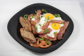 Zdjęcie "Jajka smażone, ziemniaki, buraki z kiełbaski" może być wykorzystywane do celów osobistych i komercyjnych zgodnie z warunkami zakupionej licencji Royalty-free. Obraz jest dostępny do pobrania w jakości wysokiej rozdzielczości do 5760x3840.