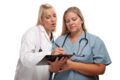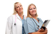 dość hiszpańskie dziewczyny i kobiety lekarz na białym tle