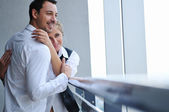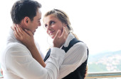 szczęśliwa para z kieliszków szampana