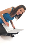 jedna młoda dziewczyna pracy na laptopie na białym tle