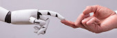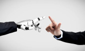 Zdjęcie "Przedsiębiorca palec dotykając palcem robotów" może być wykorzystywane do celów osobistych i komercyjnych zgodnie z warunkami zakupionej licencji Royalty-free. Obraz jest dostępny do pobrania w jakości wysokiej rozdzielczości do 5760x3840.