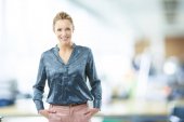Zdjęcie "Kobieta stojąc w urzędzie" może być wykorzystywane do celów osobistych i komercyjnych zgodnie z warunkami zakupionej licencji Royalty-free. Obraz jest dostępny do pobrania w jakości wysokiej rozdzielczości do 5760x3840.