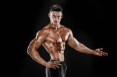 muskularny super wysoki poziom przystojny mężczyzna pozowanie na białym tle