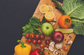 Rama ze świeżych warzyw na podłoże drewniane z miejsca kopii