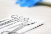 zestaw narzędzi stomatologicznych opieki zęby na białym tle na szarym tle