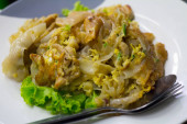 Grillowany stek z kurczaka na talerz z pieczonych ziemniaków i warzyw, tradycyjnej kuchni. Kuchnia Grill.