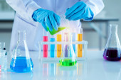 Zdjęcie "Mężczyzna chemik posiada probówki ze szkła w ręku przepełnienie roztwór" może być wykorzystywane do celów osobistych i komercyjnych zgodnie z warunkami zakupionej licencji Royalty-free. Obraz jest dostępny do pobrania w jakości wysokiej rozdzielczości do 5760x3840.