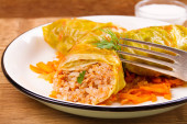 Nadziewane Gołąbki z mięsem. Gołąbki z mięsem, ryżem i warzywami. Dolma, sarma, sarmale, golubtsy lub golabki