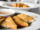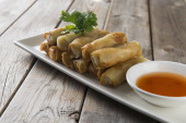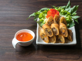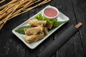 Zdjęcie "Fried sajgonki na biały danie w kuchni i drewnianym stołem" może być wykorzystywane do celów osobistych i komercyjnych zgodnie z warunkami zakupionej licencji Royalty-free. Obraz jest dostępny do pobrania w jakości wysokiej rozdzielczości do 5760x3840.