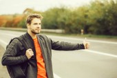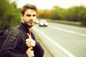 Zdjęcie "Młody facet autostopem autostop" może być wykorzystywane do celów osobistych i komercyjnych zgodnie z warunkami zakupionej licencji Royalty-free. Obraz jest dostępny do pobrania w jakości wysokiej rozdzielczości do 5760x3840.