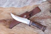 Nóż z ze skóry juchtowej myśliwski na tle furs Dzik