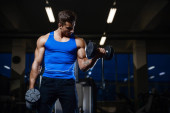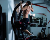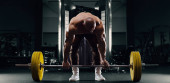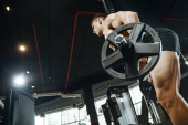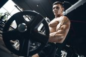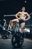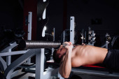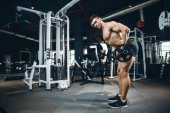 przystojny model młody człowiek szkolenia z powrotem w siłownia