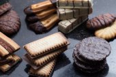 Zdjęcie "Pliki cookie różne na czarnym tle. Rano pyszne przekąski dla śniadania, brunche oraz lunche. Smaczne, słodkie i fast food" może być wykorzystywane do celów osobistych i komercyjnych zgodnie z warunkami zakupionej licencji Royalty-free. Obraz jest dostępny do pobrania w jakości wysokiej rozdzielczości do 5760x3840.