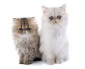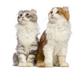 brytyjski długowłosy kot, 4 miesiące, siedząc przed białym tle