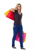 Zdjęcie "Dziewczyna zakupy na białym" może być wykorzystywane do celów osobistych i komercyjnych zgodnie z warunkami zakupionej licencji Royalty-free. Obraz jest dostępny do pobrania w jakości wysokiej rozdzielczości do 5760x3840.