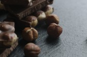 Zdjęcie "Czekolady kawałki i orzechy na ciemnym tle Łupek z miejsca kopii. Czekoladowe tło. Widok z góry. Stonowanych" może być wykorzystywane do celów osobistych i komercyjnych zgodnie z warunkami zakupionej licencji Royalty-free. Obraz jest dostępny do pobrania w jakości wysokiej rozdzielczości do 5760x3840.