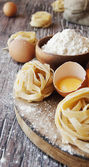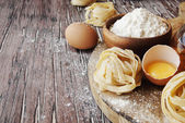 Zestaw produktów do gotowania makaronu z mąki pszennej, Selektywny fokus