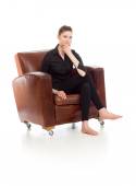 Zdjęcie "Strzał studio dziewczyna siedzi na krześle żółty." może być wykorzystywane do celów osobistych i komercyjnych zgodnie z warunkami zakupionej licencji Royalty-free. Obraz jest dostępny do pobrania w jakości wysokiej rozdzielczości do 5760x3840.