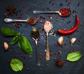Różne kolorowe indyjskie przyprawy i zioła w łyżki na białym tle