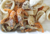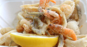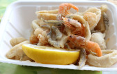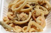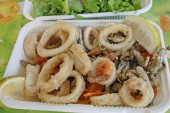 tło, ryby smażone na patelni w stoisku Sprzedawcy uliczni na wh